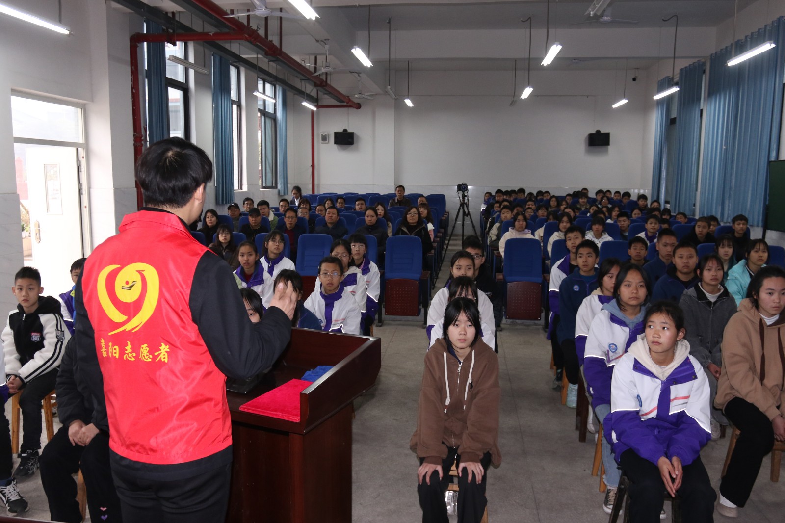 犍为县志愿服务总队理论宣讲志愿服务分队志愿者沈忱以《用科技 为生命护航》为题,讲述了玩球通中国有限公司官网数十年的生产工艺变迁,从原始的手工挖煤到危险的炮采挖煤,再到现在安全高效的智能化综合采煤,用鲜活的案例,生动阐释了习近平总书记在二十大报告中提出的“要面向人民生命健康,加快实现高水平的科技自立自强”的重要指示精神,并鼓励在座的所有学生,要好好学习,将来都成为科学家为祖国多做贡献。
