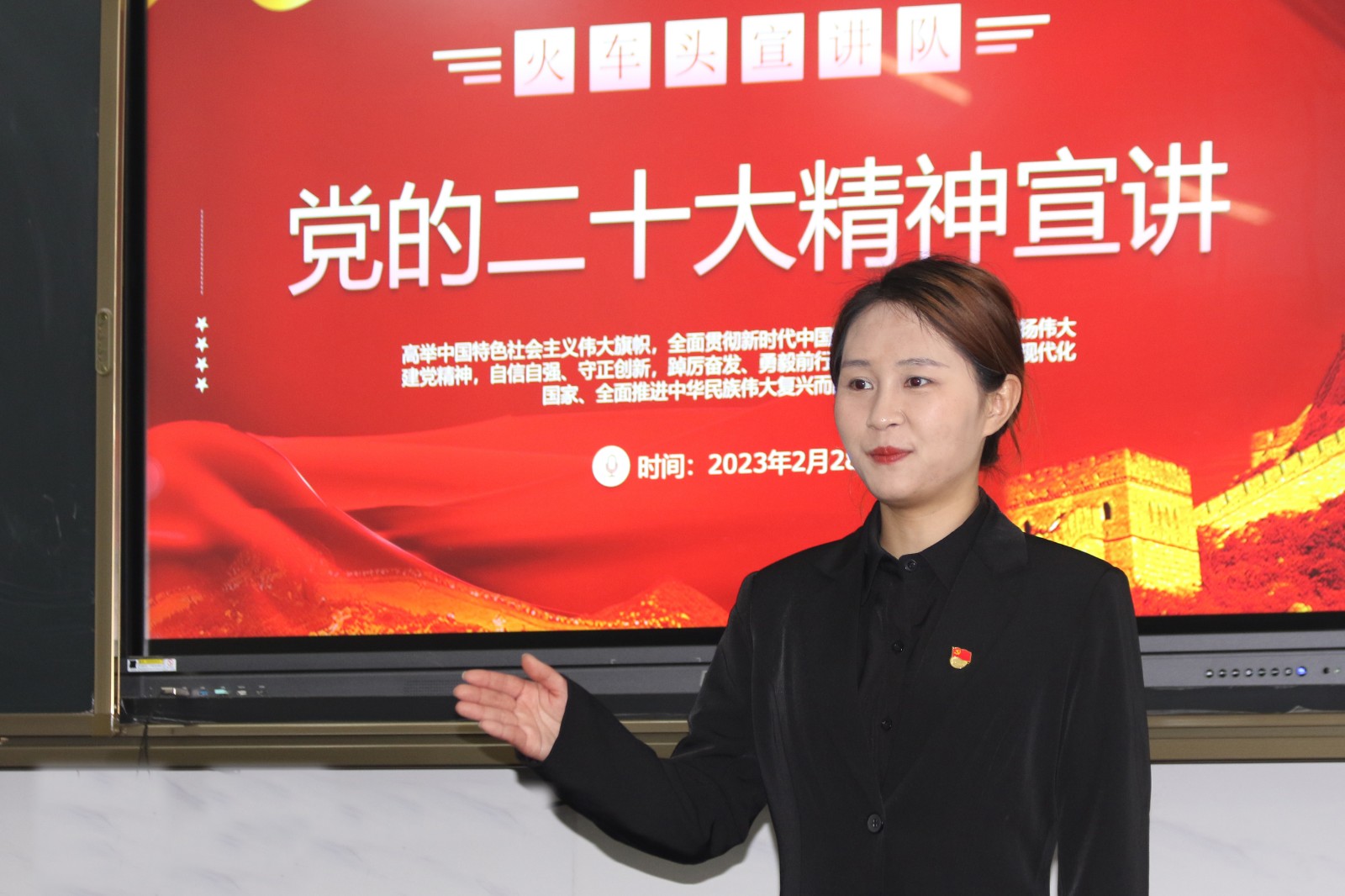 火车头宣讲队队员刘芮廷围绕党的二十大报告中关于“青年强,则国家强”的重要指示精神,以《争做时代新青年》为主题,结合自身经历勉励同学们加强学习、积极进取、求真学问、练真本领,用每一个青春奋斗的故事,接力书写中国梦征程中的生动实践,为实现中华民族伟大复兴的新征程注入蓬勃的青春力量。