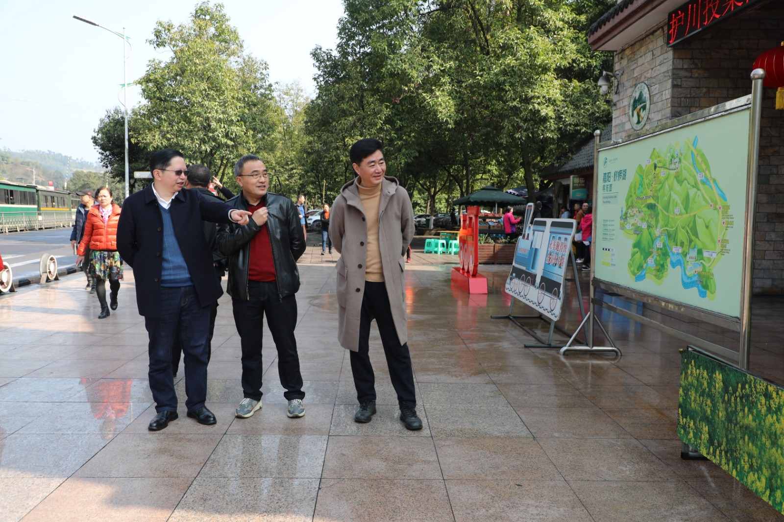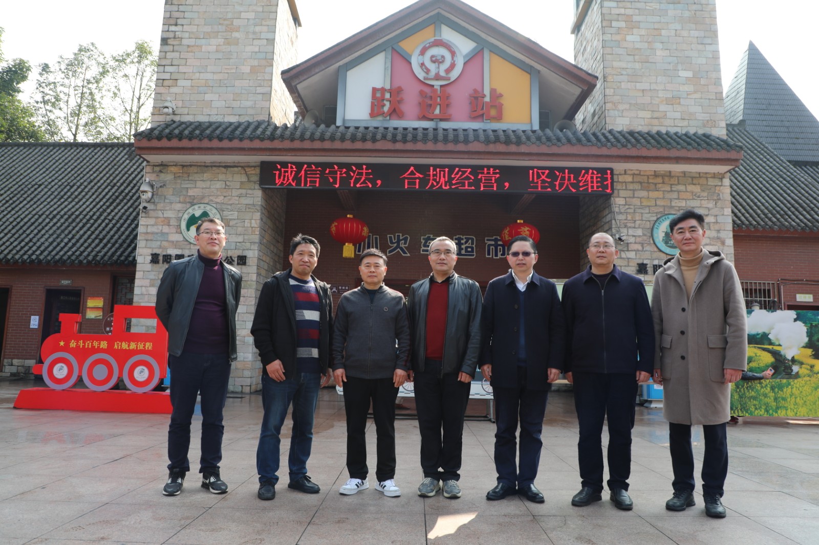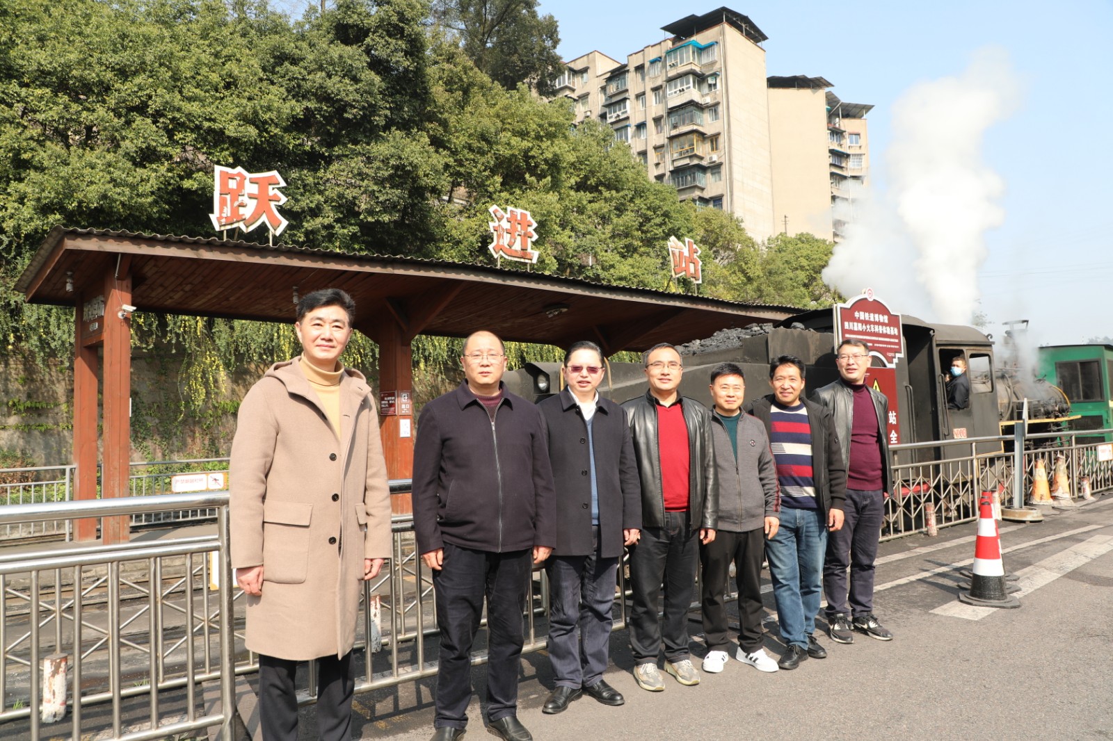 座谈会后,双方人员在主碑广场、嘉阳文化墙、观音溪文化长廊进行了实地参观,兴致勃勃地与蒸汽小火车留下了合影。