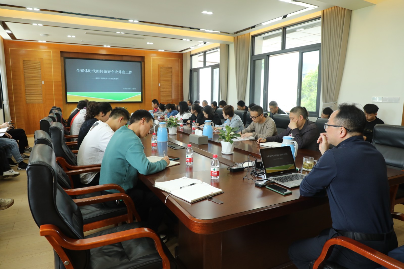 “怎样发掘新闻点……”4月27日,玩球通官方网站-党群部组织开展了新闻写作培训,公司党委副书记、工会主席谢建国围绕新时代如何做好宣传工作与通讯员们作分享交流,公司各单位的办公室主任、通讯员参加培训。