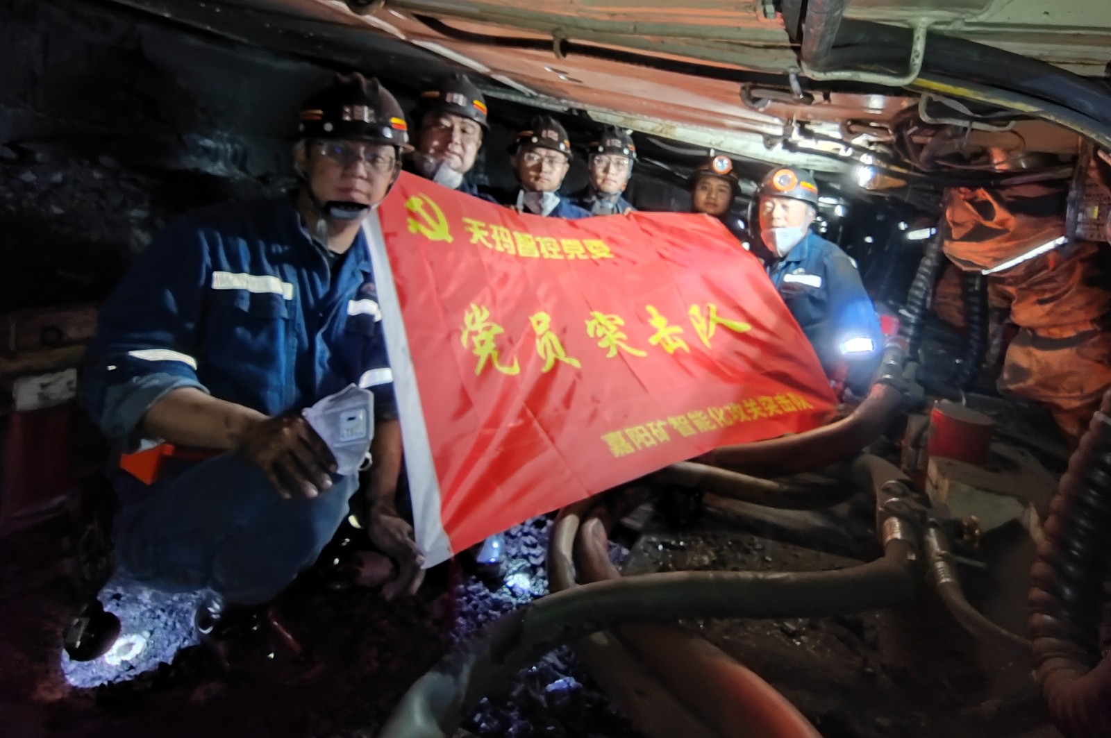 5月5日,采煤二队支部4名党员骨干与天玛智控营销服务中心第一党支部6名技术人员在31231智能化综采工作面联合成立“党员突击队”,双方成员一起察看了生产线监控中心控制系统、语音控制系统、运输系统、支架、电液控制系统、采煤机、乳化液泵站等设备的运行情况,与采煤组人员进行现场交流探讨,进一步掌握生产线设备联合运转现状。经过技术“会诊”,突击队成员发现新工艺在推进过程中存在支架初撑力不够、自动化操作不顺、采煤机跟机率低、职工不熟悉生产工艺等问题,及时面对面讲、手把手交,不断提醒环节细节方面的注意事项,纠正职工不标准操作行为,对工作面采煤机斜切进刀工艺、支架自动跟机拉架移溜参数、支架支护情况检查提出合理化建议。