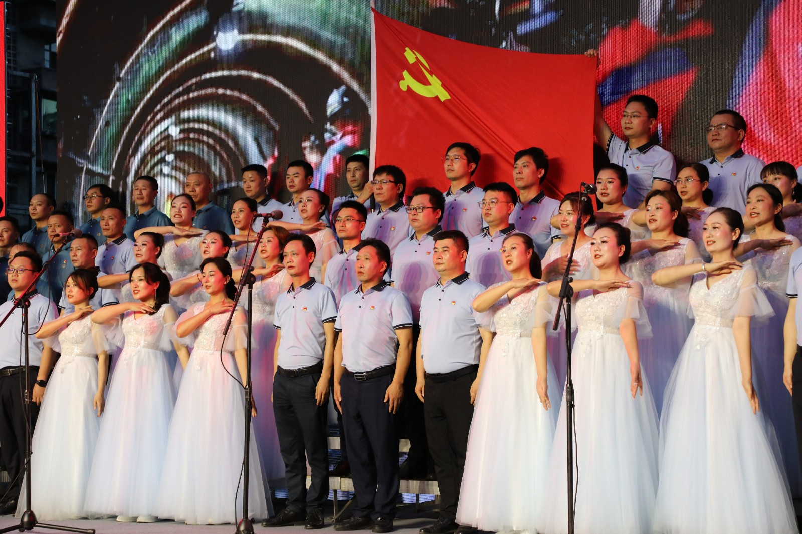 7月5日晚,集团公司举办“凝心铸魂跟党走 团结奋斗新征程”主题歌咏晚会,热烈庆祝中国共产党成立102周年,集团机关和各单位500多名职工激情高歌,盛赞党的伟业,坚定文化自信,凝聚奋进力量,这是公司学习贯彻习近平新时代中国特色社会主义思想的一次生动实践。