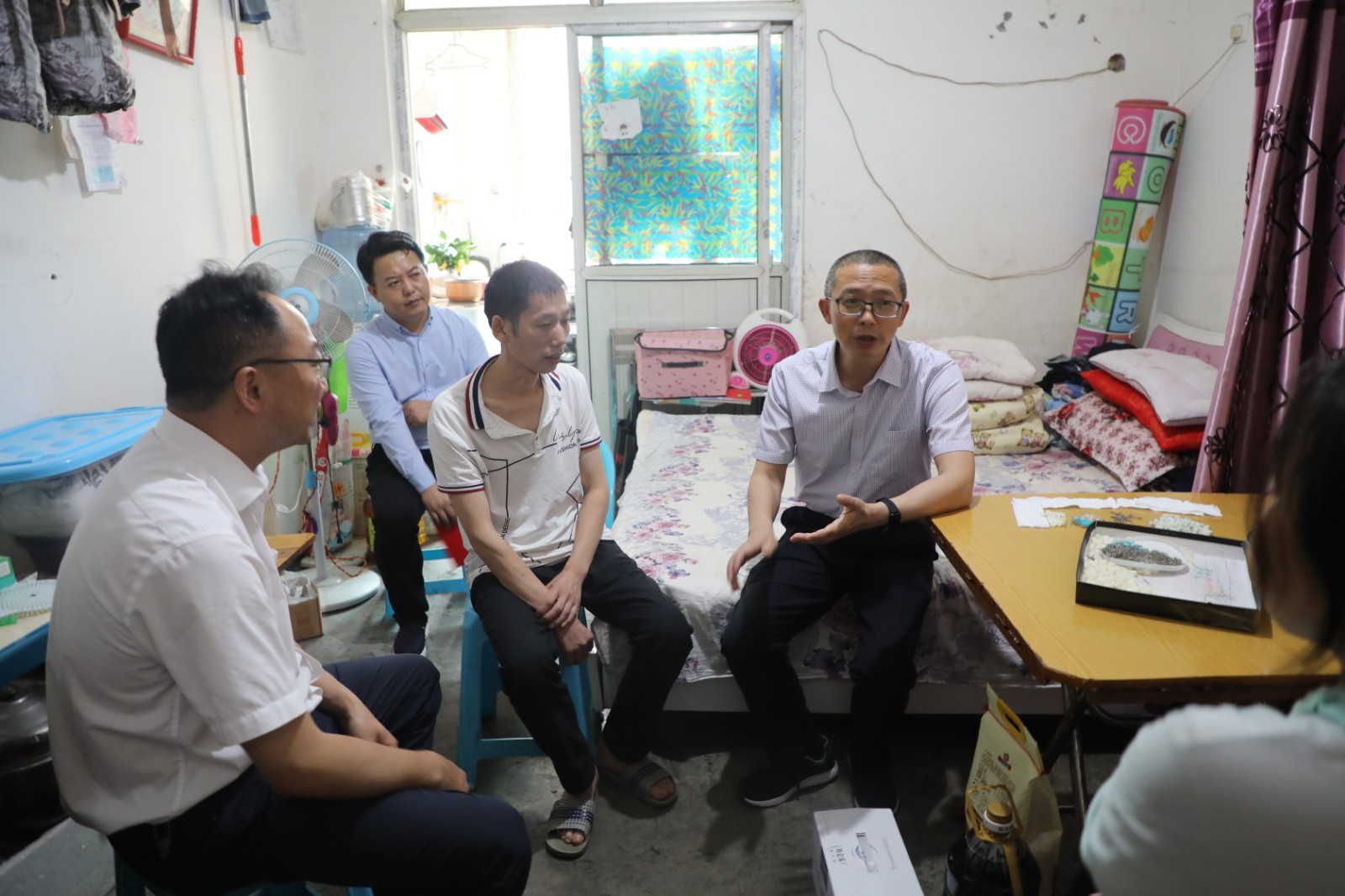 5月28日,乐山市市总工会党组书记、常务副主席黄国兵率市县工会负责同志一行到玩球通官方网站-调研,走访慰问劳模和困难职工,送上组织的关心和问候。