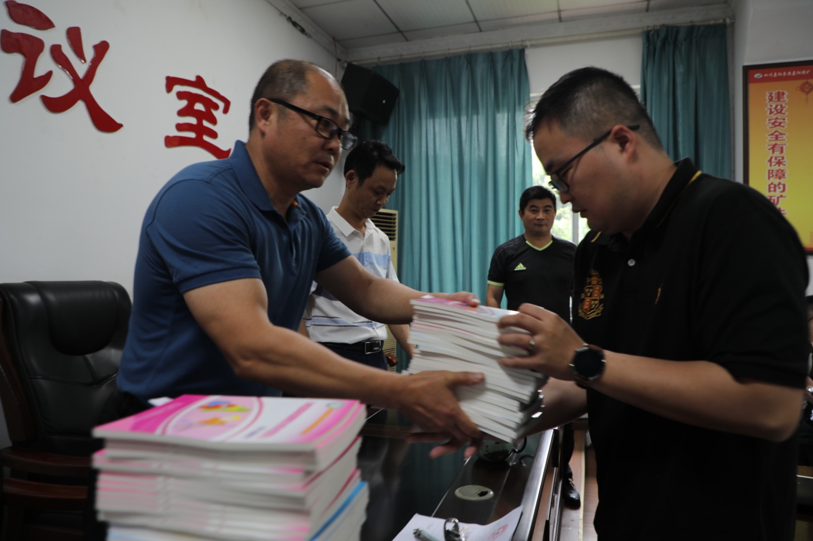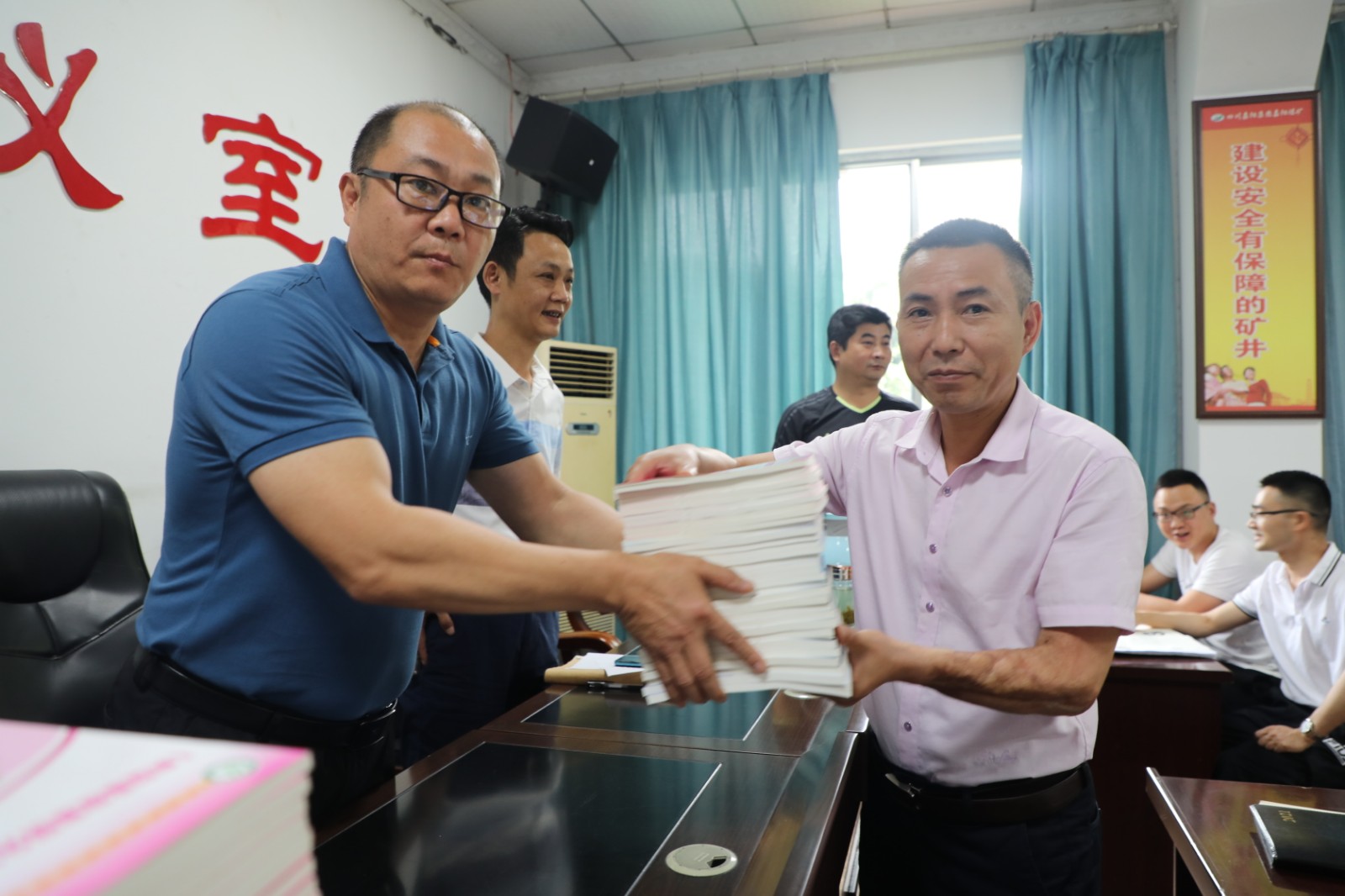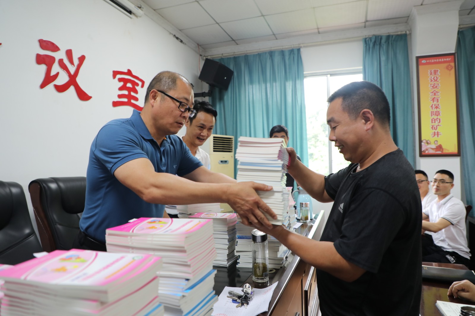 今年6月是第20个全国安全生产月,带着对煤矿安全生产的重视和对职工安全行为的关心,6月7日上午,玩球通官方网站-总经理范勤英将三本安全类书籍发放到了煤矿11个队站的队长手中,勉励职工加强学习重视安全。