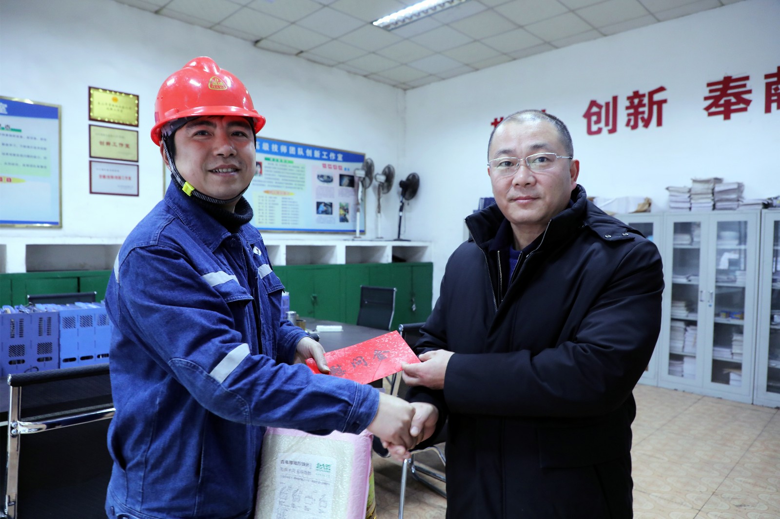 1月26日上午,党委书记、董事长杜勤带着满满的关怀走进了玩球通中国有限公司官网职工徐德富的家中。徐德富是四川省劳模,省人大代表,现任掘进一队党支部书记。在徐德富的家中,党委书记杜勤仔细了解他的工作、学习和家庭生活。在得知他家中一切安好后,亲切的对他说,作为党支部书记,我们要抓好支部书记的主责主业,做好职工政治思想教育,抓好操作技能培训,提升职工技能水平,提高职工安全意识,紧紧围绕企业安全生产开展工作;要强化政治引领和责任担当,加强党员政治学习,发挥好支部战斗堡垒作用和党员的模范带头作用,为企业各项目标任务的完成贡献智慧力量。在新春佳节来临之际,谨代表公司党委、行政和工会来看望你们,祝你们全家阖家欢乐、幸福安康。
