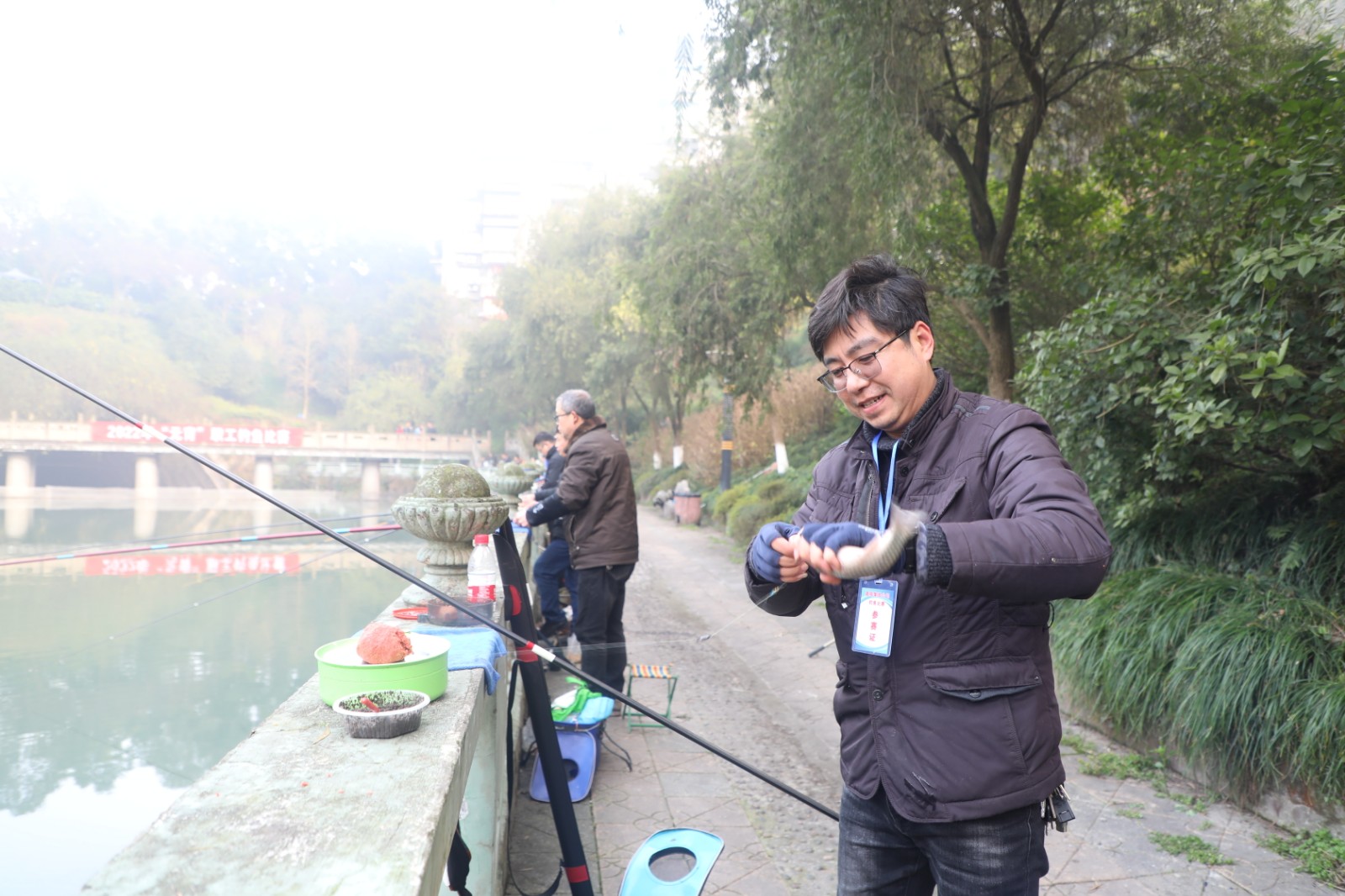 矿区观音溪钓鱼比赛现场热闹非凡。15日早上7:30,经过现场抽签后选手们进入各自的钓位,撑杆、挂铒、抛钩一气呵成,静待鱼儿上钩。薄雾散去,当温暖的阳光照耀水面,鱼儿似乎才开始活跃起来,“嘿,咬钩了、咬钩了,还是条大鱼,稳住……”只见钓杆如弓,参赛选手憋着劲身子左右摆动,时而前进时而后退,神情紧张但却不慌乱,再看鱼儿拍水,时而下潜,时而翻滚,不一会的功夫,已经没有了力气,乖乖地被提起放进鱼护。钓鱼之乐不仅在于享受收获时带来的小欢喜,更多的是能拥有一份悠然自得和平静闲暇的心境。经过三个小时的角逐,玩球通中国有限公司官网一队获得第一名,公司机关获得第二名,煤矿二队获第三名。