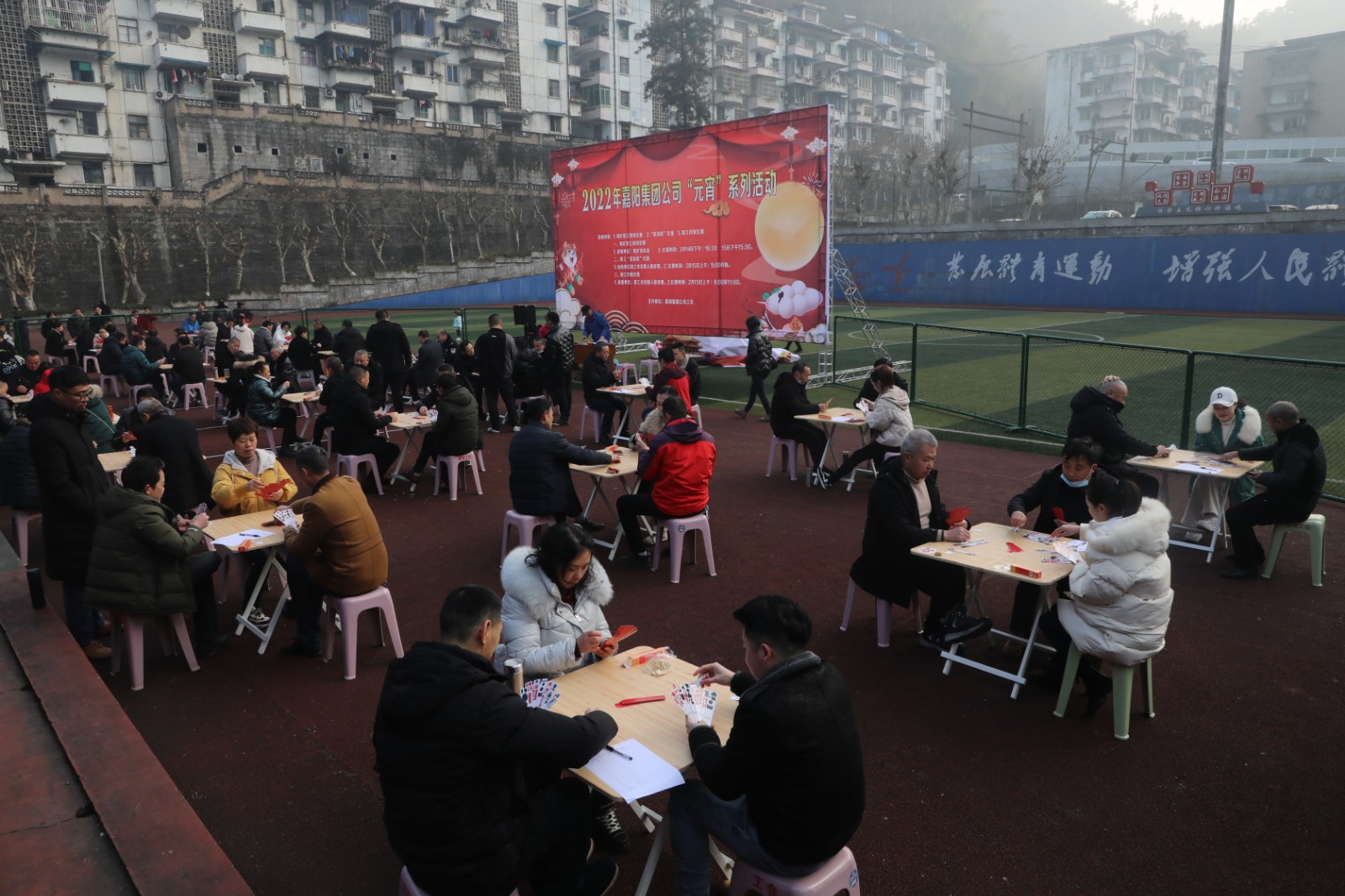 “贰柒拾”是职工们喜爱的娱乐形式。九点整,比赛在矿区官斗山足球场开始。比赛以淘汰制方式进行,81名选手分成27桌,比赛座位按抽签定桌,每桌决出第一名进入到下一轮,每轮比赛40分钟。扯牌、进张、听牌、和牌,场上千变万化,拼手气、比技术、赛心态,趣味无穷、欢乐多多,上一盘“抬了炮”没关系,下一盘争取和个“圈坤大”……选手一边“扯着”手中的牌,一边嘻嘻哈哈,气氛融洽。经过四轮比赛,最终来自综司的陈朝才、何羽分获一、二名,玩球通中国有限公司官网的徐艳英获得第三名。