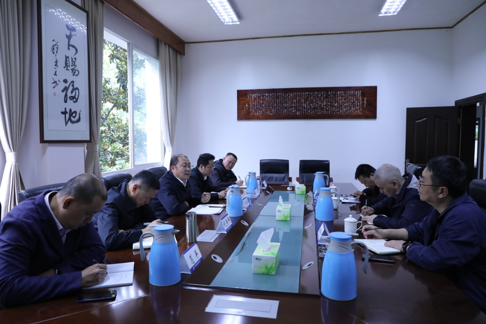 为解决川南发电煤炭库存大幅下滑,民生保供任务迫切的问题,川南发电党委副书记、总经理陈嵩,副总经理李明尧一行于3月29日到嘉阳实地调研煤炭产量、库存、洗选加工及供销情况。玩球通官方网站-党委副书记、总经理范勤英就电煤保供相关事宜与陈嵩一行进行了商谈。