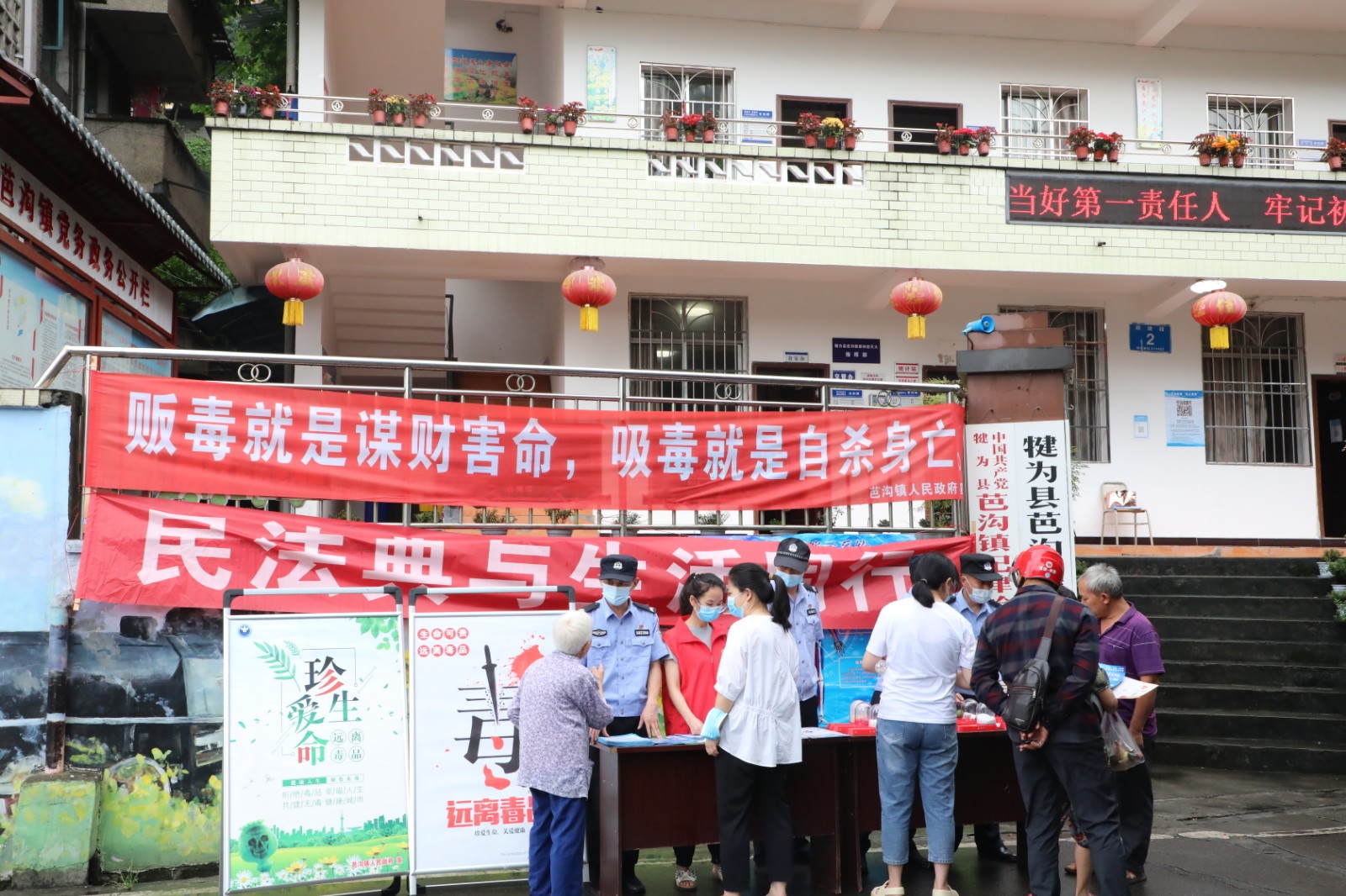 为进一步宣传毒品危害,提高职工群众拒毒意识,6月24日,玩球通官方网站-联合芭沟政府、石溪派出所开展了“全民禁毒”为主题的“6.26”国际禁毒日宣传活动,普及禁毒知识,传播禁毒理念,宣传禁毒政策,大力推进禁毒宣传进企业、进社区。
