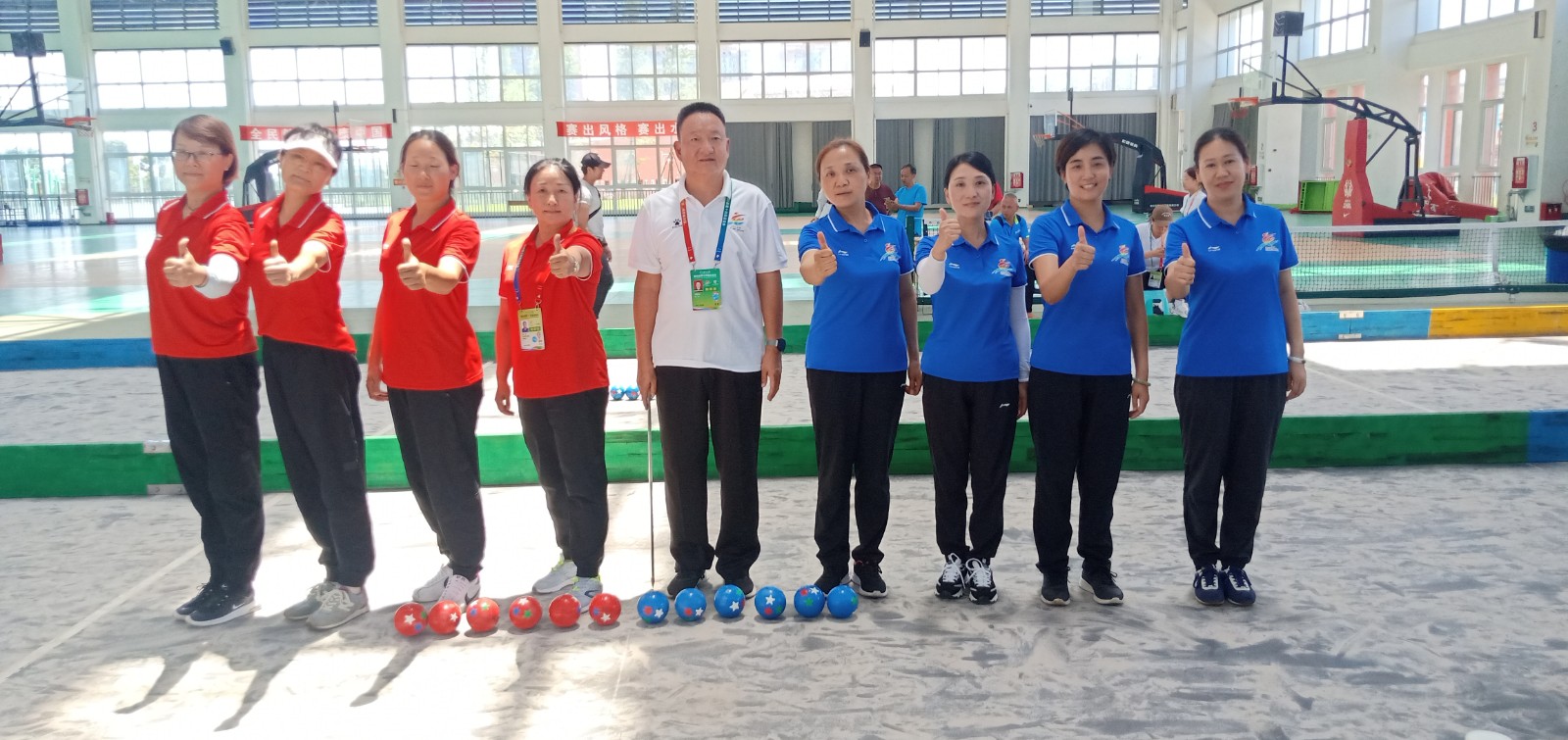 比赛中,他们沉着冷静,目光坚定,以优雅沉稳的姿势、坚定有力的动作将一颗颗球或滚或抛,凭借扎实的基本功、出色的控球能力,精准得分。特别是在与成都代表队争夺塑质球中年组男子团体金牌的比赛中,玩球通官方网站-老队员杜永贵、谢洪、廖选富用精湛的靠球技术和精准抛击,击败了前上海队主靠手和四川队老队员,为金牌的取得发挥了关键作用。