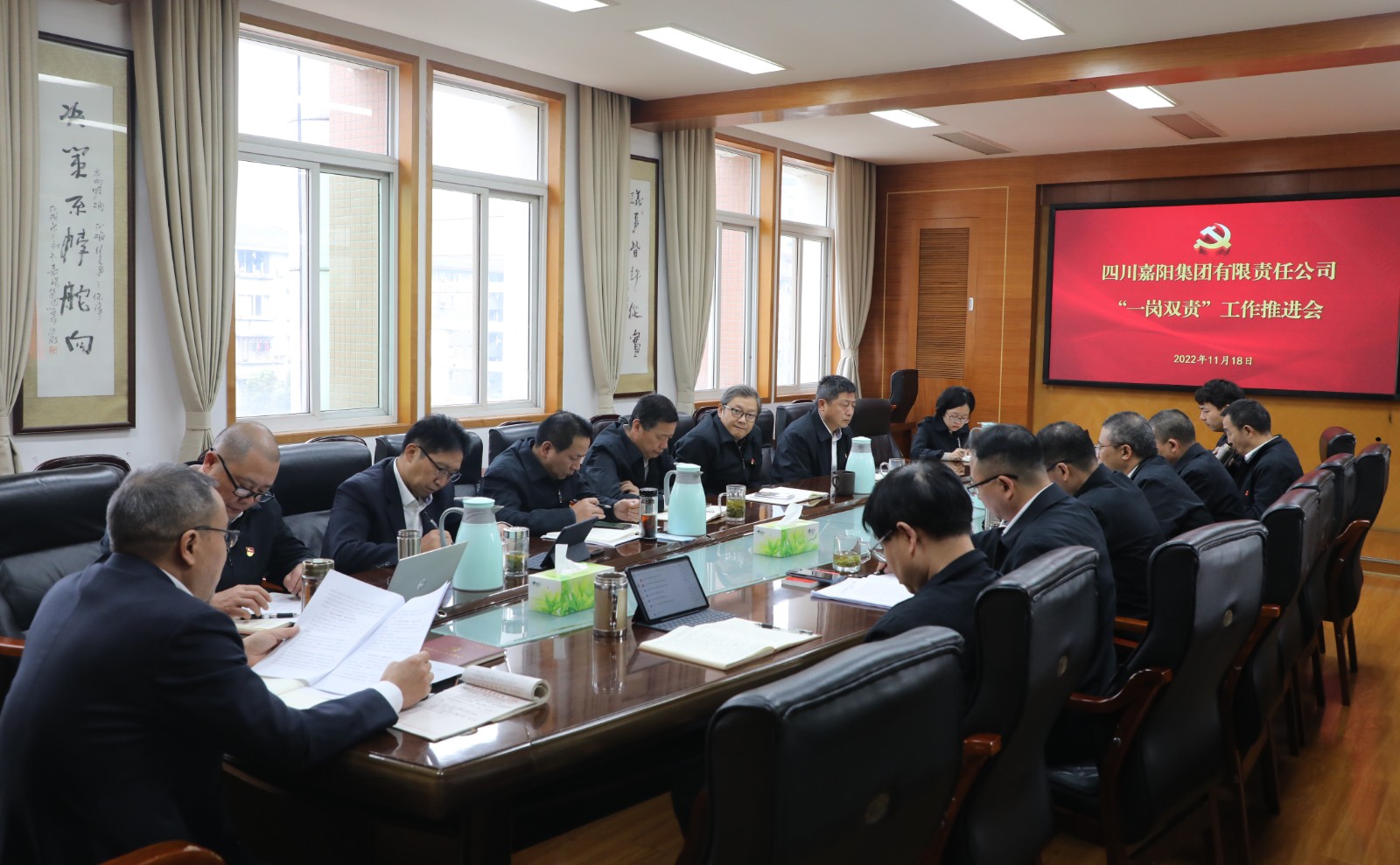 11月18日,玩球通官方网站-召开“一岗双责”工作推进会,会议听取了集团公司领导班子成员履行“一岗双责”情况的汇报,经营班子成员及部门负责人参加会议。