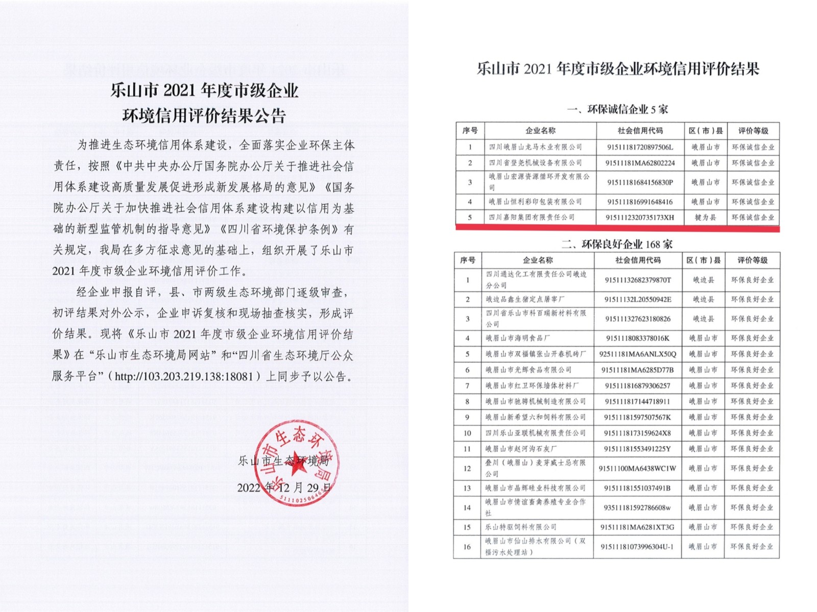 12月29日,乐山市生态环境局公布了2021年度市级企业环境信用评价结果公告,玩球通官方网站-荣获此次环境信用评价中的最高等级“环保诚信企业”称号,这也是玩球通官方网站-连续四年获得该项荣誉。